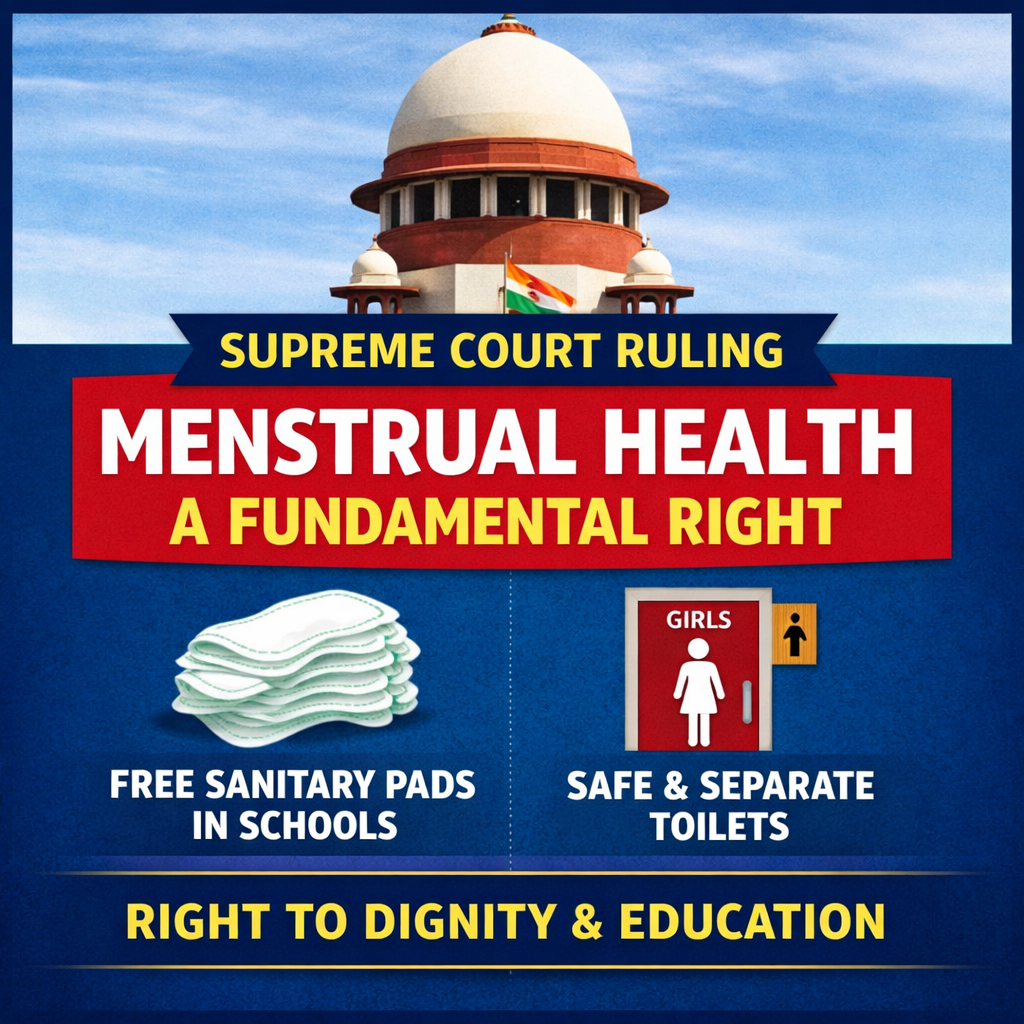 In a landmark judgment on January 30, 2026, the Supreme Court of India held that menstrual health is part of the right to life under Article 21 of the Constitution. This means access to safe menstrual hygiene is no longer just a policy goal — it is a constitutional right that every girl student in India must have.