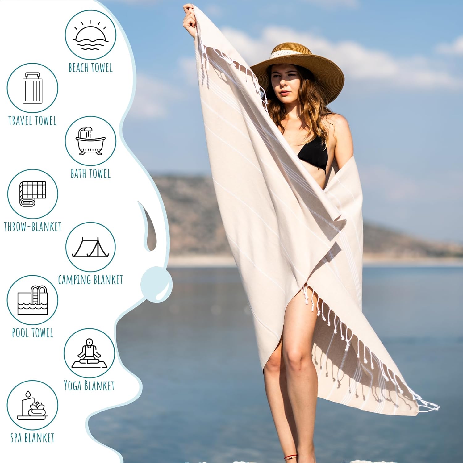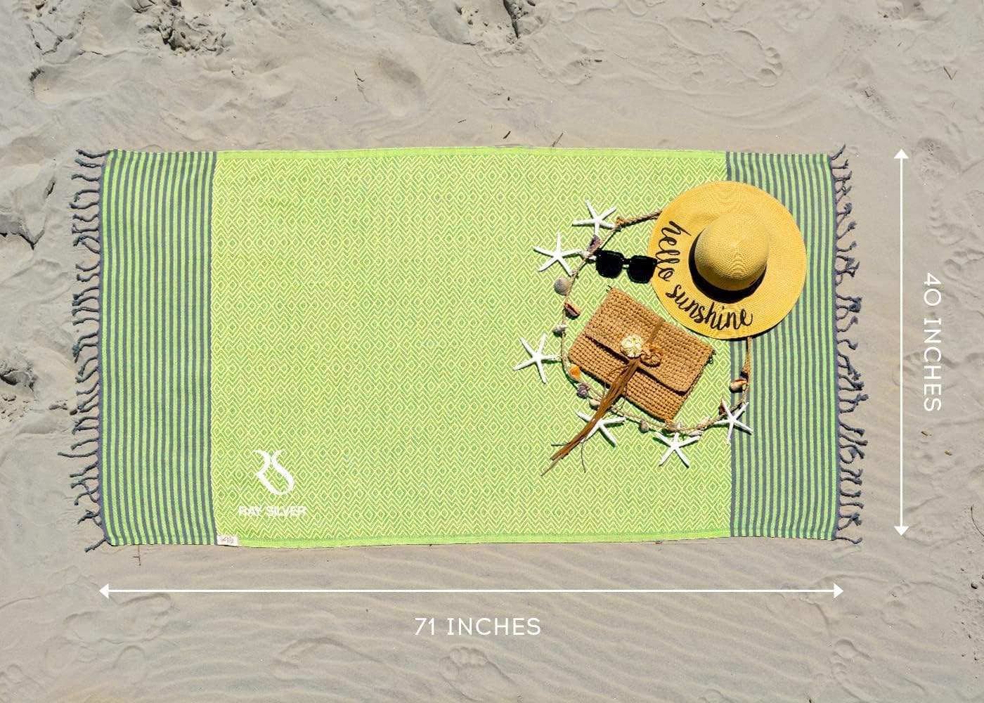 RAY SILVER : from the heart of the world-famous turkish cotton Made in Turkey with natural Turkish Cotton. Our Towel Quick drying highly absorbent and durable. RAY SILVER Turkish Towels are famous for the weaving techniques and material used. Our Large Turkish beach towel has a unique Premium pattern which adds a stylish view compared to other ones. Ray Silver towels Printed in different combinations of colors, you can be more attractive and beautiful on the beach Our Beach towels are an indispensable necessity for seaside vacations.. We hope these Oversized beach towels can help you more enjoy your beach time with your family and friends. The unique Premium pattern with eye catching color options makes a huge difference than other Brands. Turkish cotton with hand knotted tassels. Ray Silver towels are designed to be large and lightweight. You will Feel the difference with stunning look with Ray Silver Towels.
